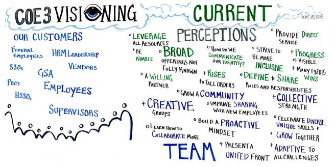 From July-October 2015, I had the opportunity to train with skilled facilitators at the Performance Improvement Council in graphic facilitation, graphic recording, and strategic design. Unclear?